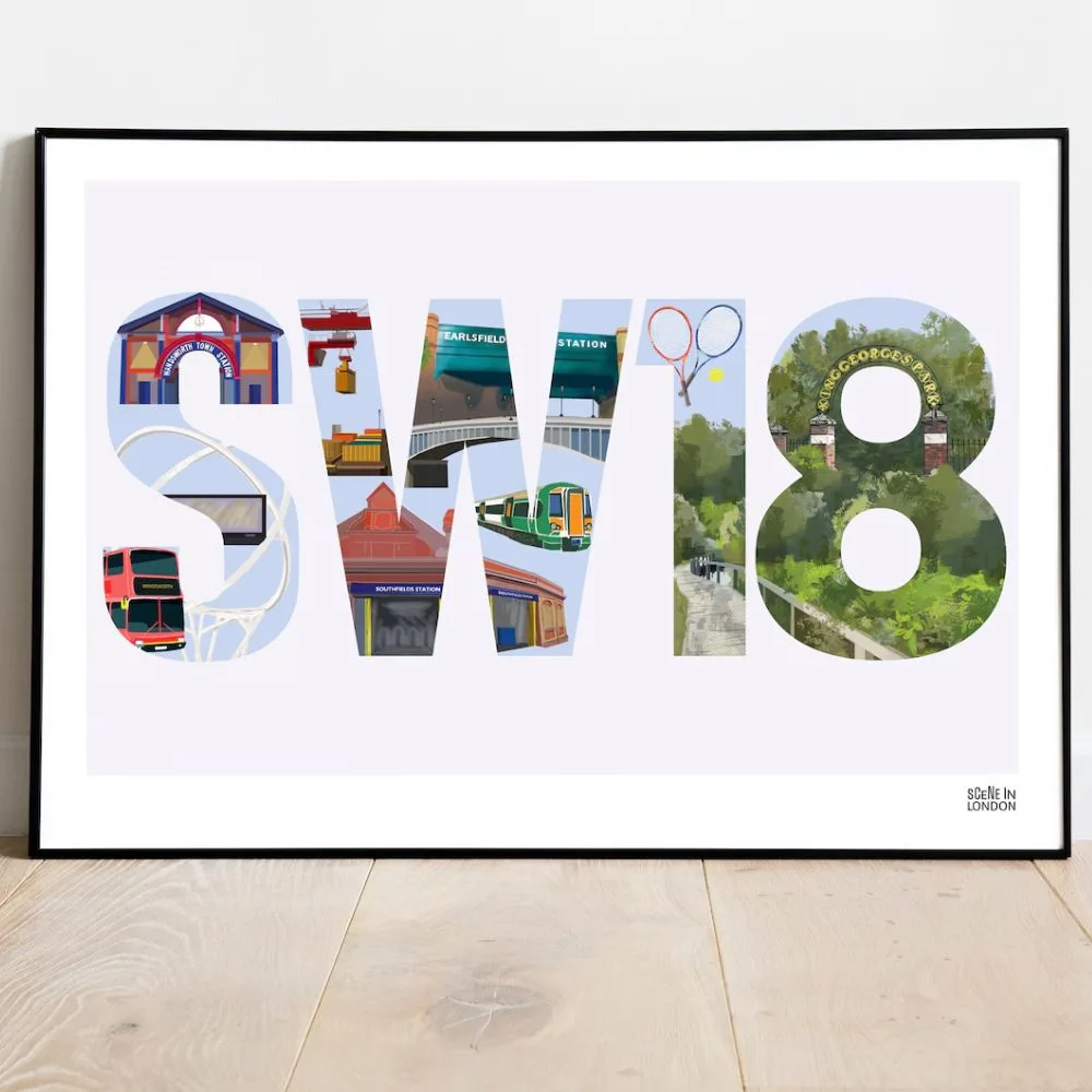 SW18 Postcode Landmarks Print